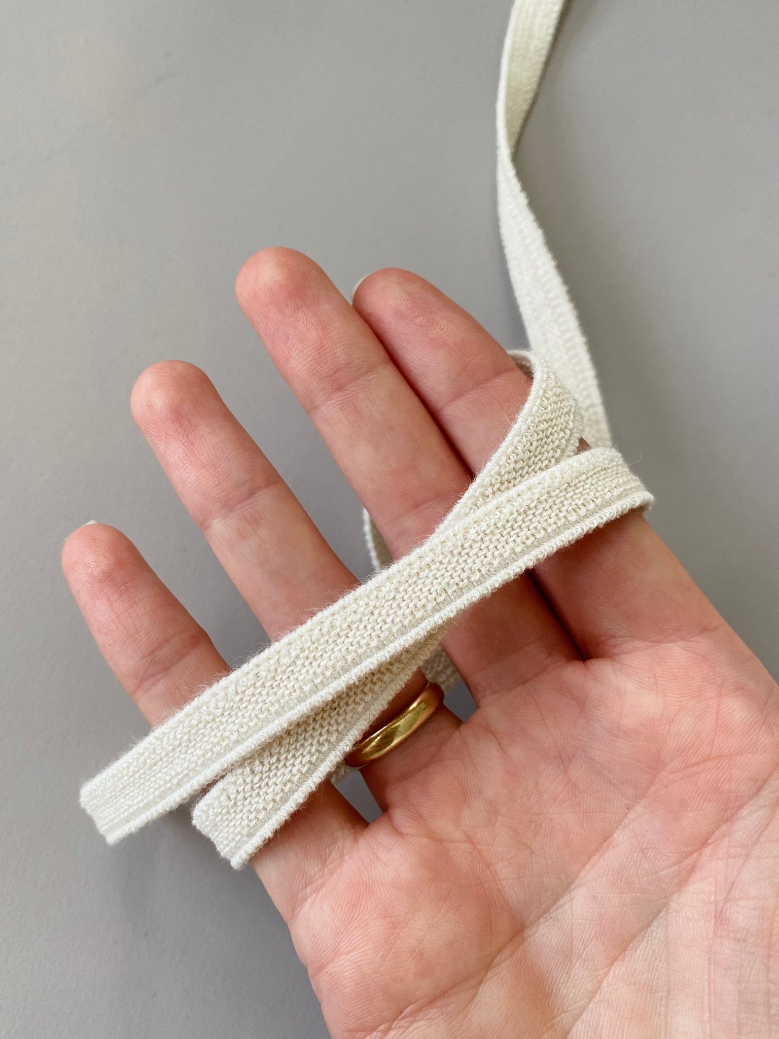 100% biodegradable elastic made from GOTS organic cotton and natural rubber.