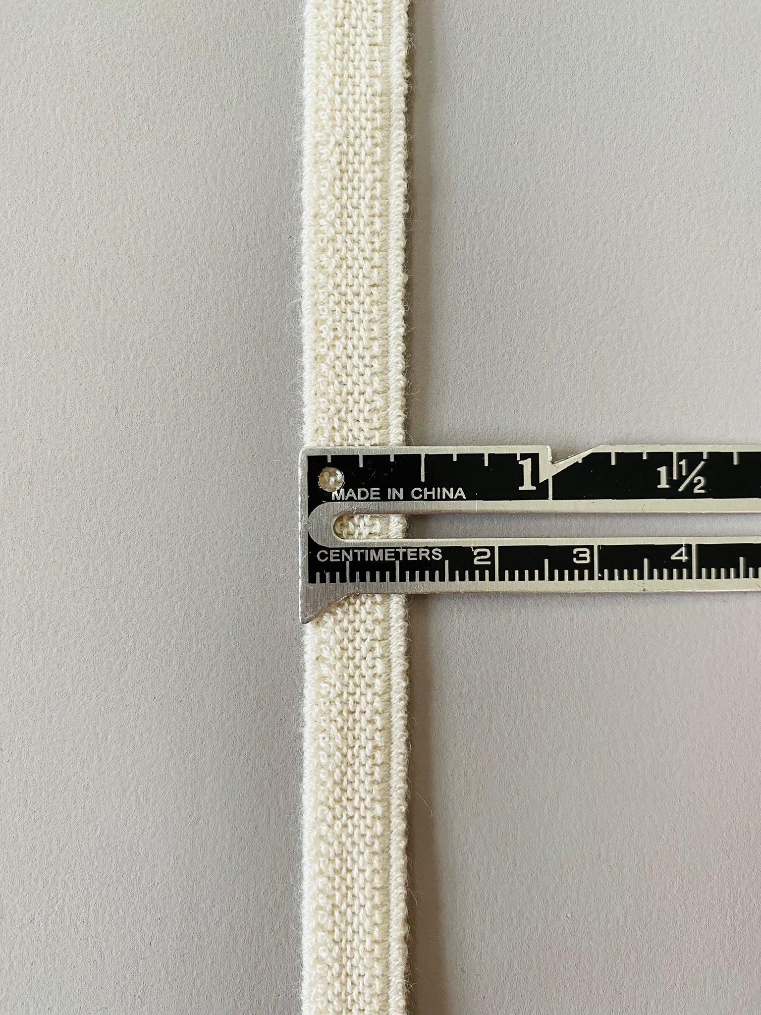 This elastic is pliable and soft to touch, with just enough rigidity. A high quality and beautiful elastic that can be worn next to skin or encased in fabric.