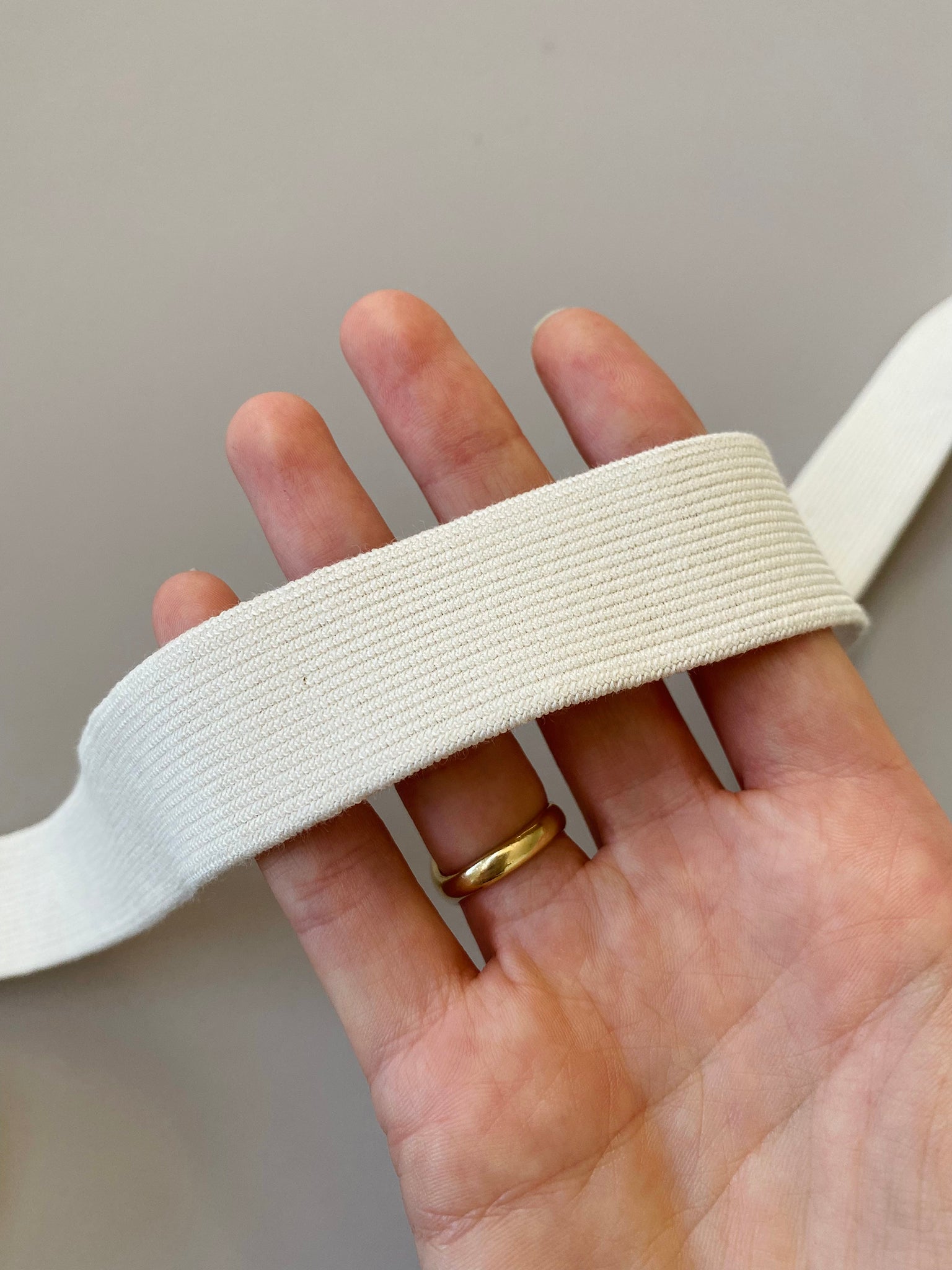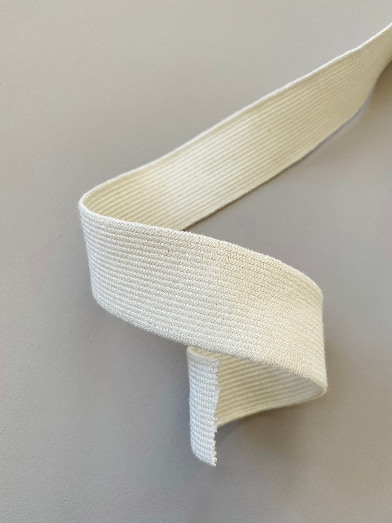 This elastic is pliable and soft to touch, with just enough rigidity. Perfect for soft elasticated hems/cuffs or waistbands. It's absolutely beautiful elastic due to the GOTS organic cotton component!