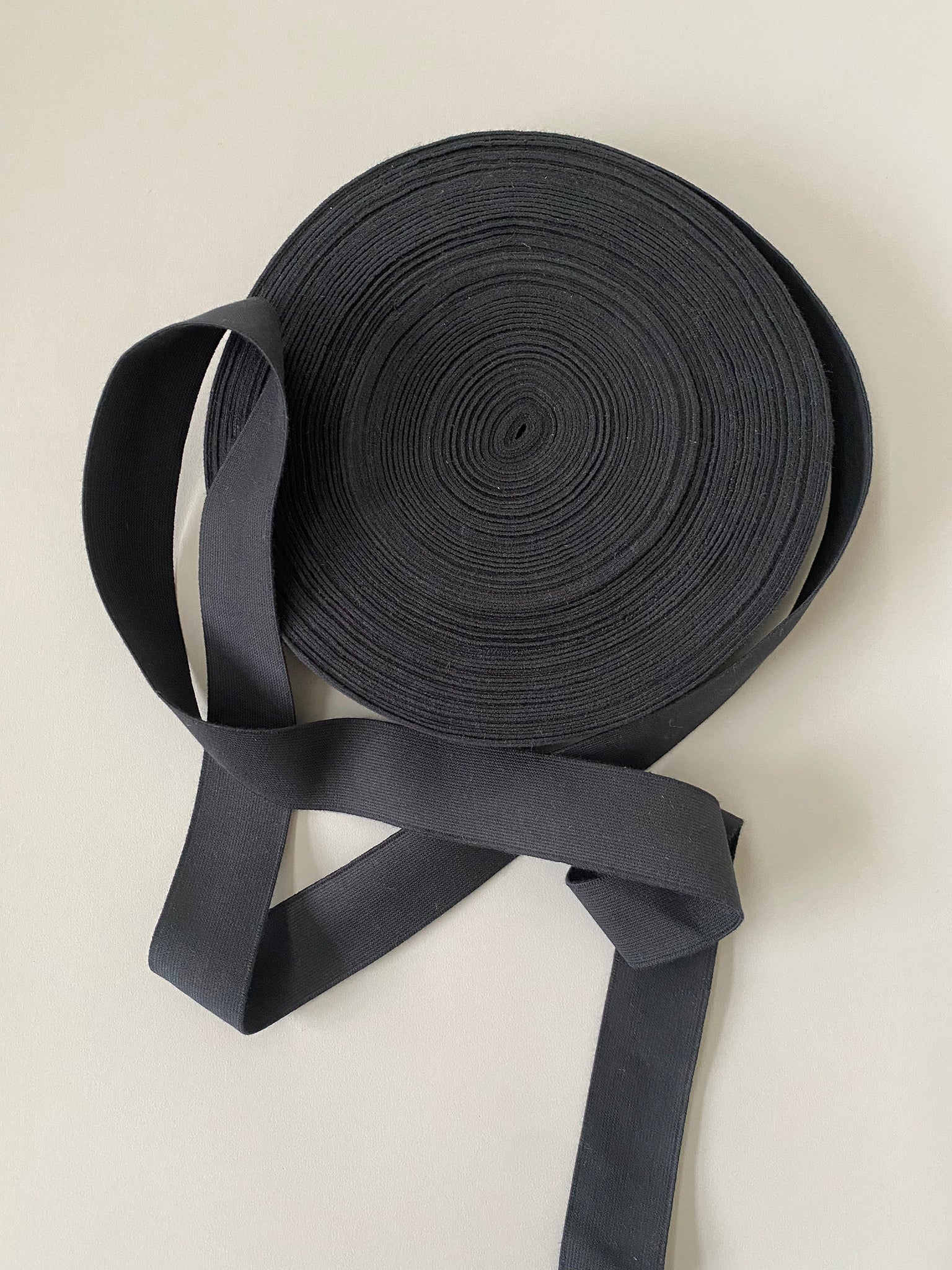 This elastic is pliable and soft to touch, with just enough rigidity. Perfect for soft elasticated hems/cuffs or waistbands. It's absolutely beautiful elastic due to the GOTS organic cotton component!