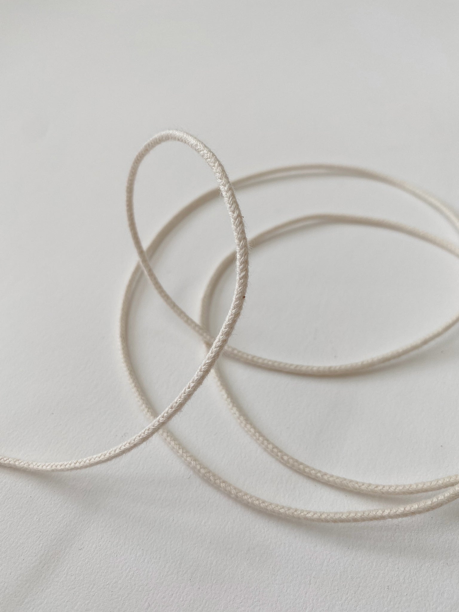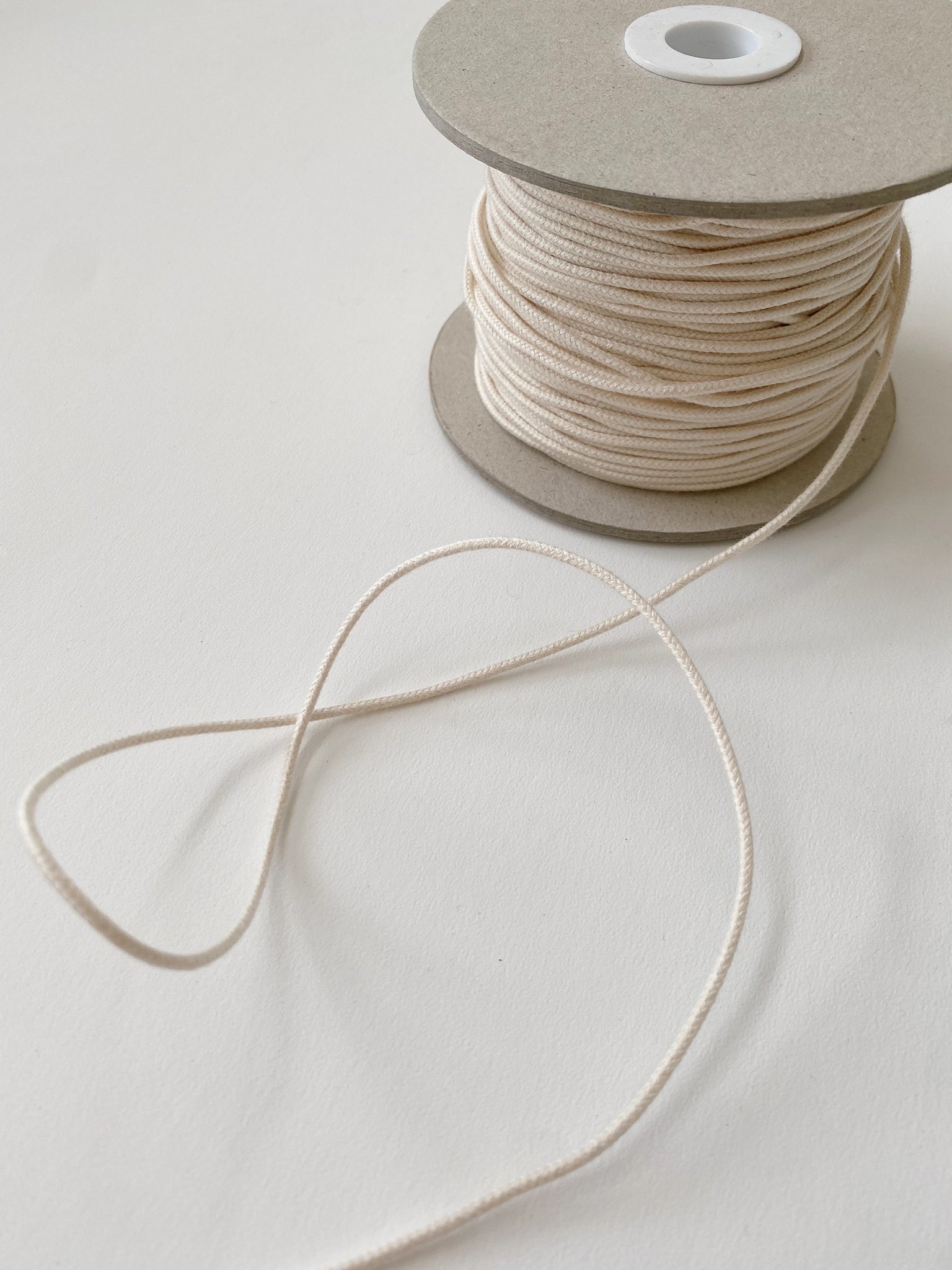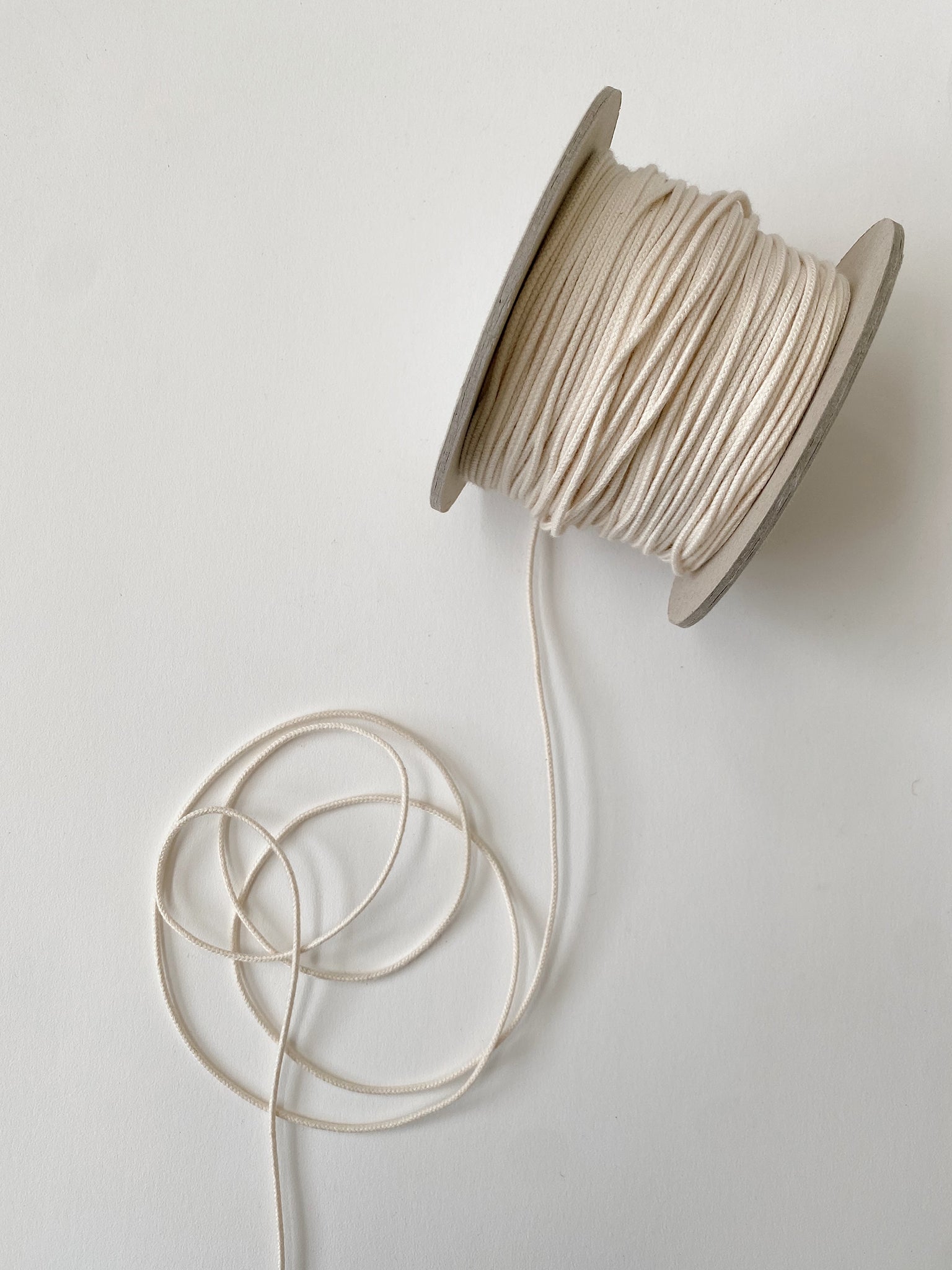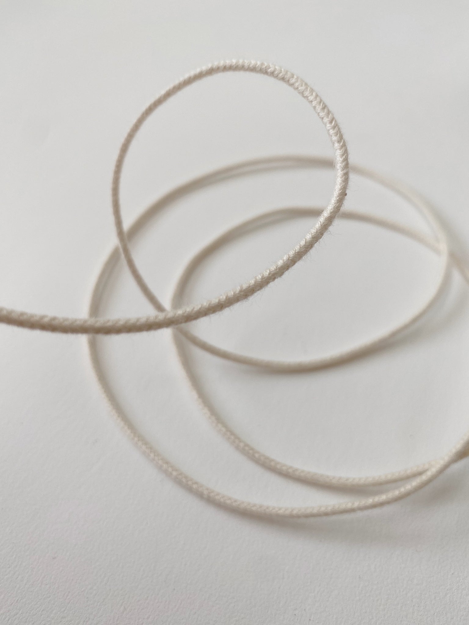100% biodegradable round piping cord made from GOTS organic cotton in 2mm diameter.