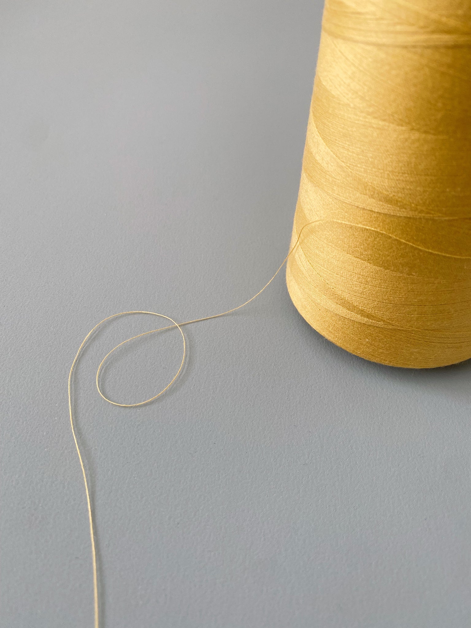 100% Tencel (Lenzing lyocell) thread. This gold thread is a fantastic multipurpose thread for overlocking, top stitching, cover stitching, straight sewing or hand sewing.